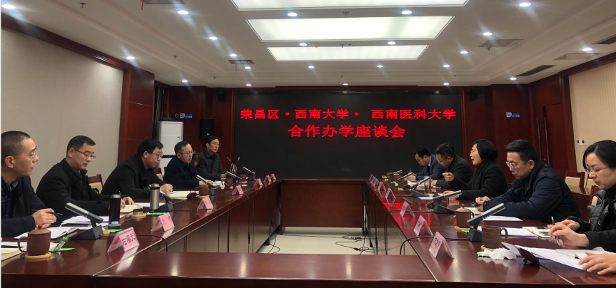 李劲渝介绍荣昌区近年来经济社会发展取得的成就和成渝地区双城经济圈建设背景下荣昌区未来发展的规划,提出荣昌加强教育和医疗条件建设方面的具体举措和现实需求。学校国内合作处负责人表示,将进一步强化与荣昌区相关部门的合作沟通机制,积极发挥学校优势,共同推进包括医学在内的各领域合作。