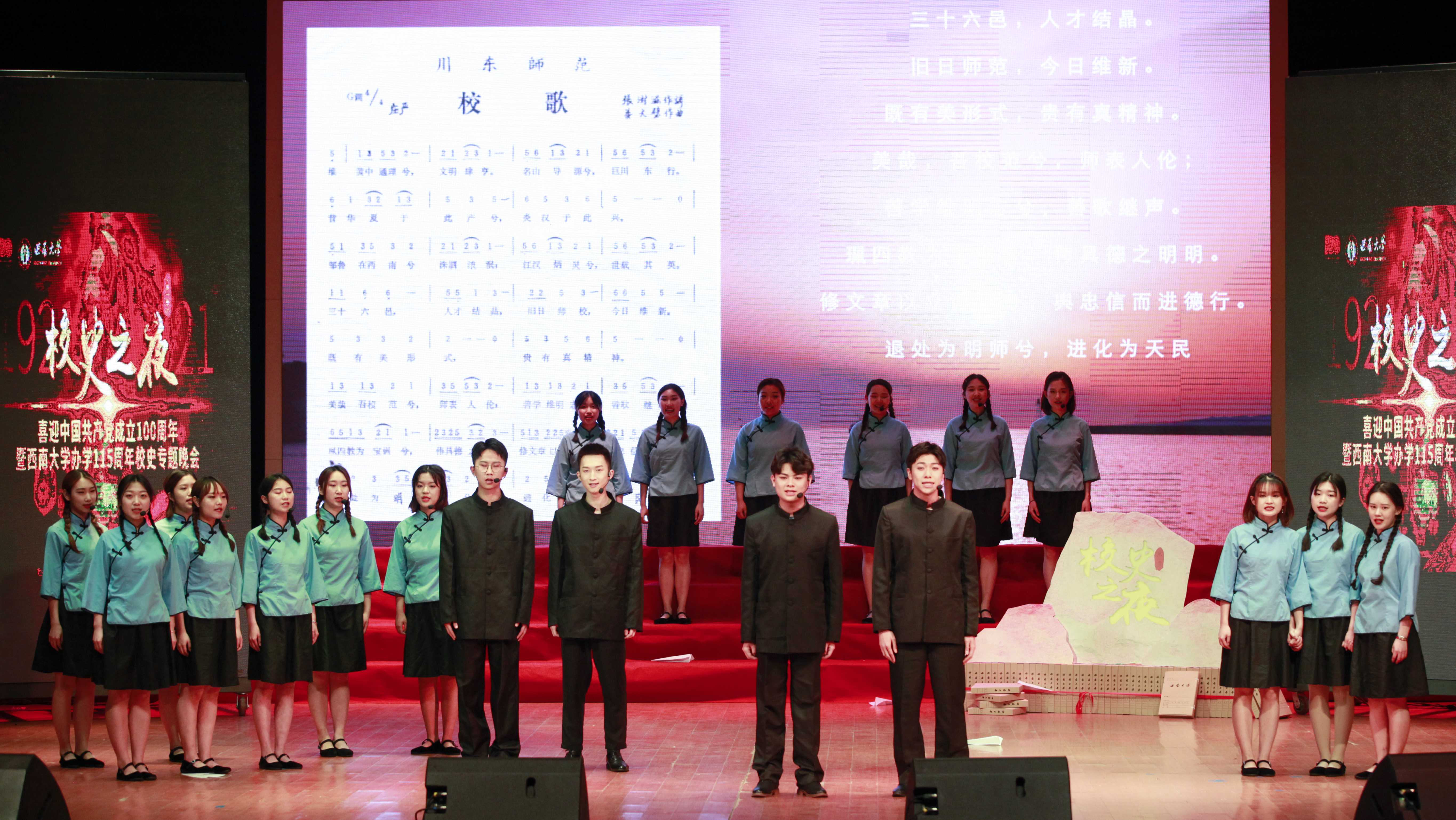4月18日,贝博艾弗森代言体育官网办学115周年校庆纪念日。当晚,学校在光大礼堂举办《校史之夜》专题文艺晚会,向党的百岁华诞和学校115周年校庆献上盛大礼赞。晚会通过音乐、舞蹈、诵读、采访、档案展示等多种形式的演出,讲述学校发展历程,展示学校的办学精神与特色。活动受到人民网、重庆日报、重庆卫视、华龙网、上游新闻等多家媒体广泛报道。
