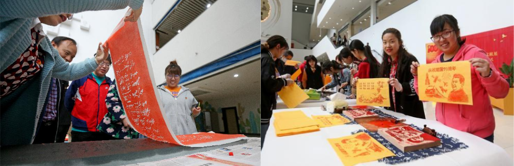 此外,为进一步提升活动效果,学校图书馆还在馆藏文献展展区旁设置“永远跟党走”主题展,用数十幅美术作品生动呈现中国共产党成立至今各个时期的重大历史事件,展示中国共产党的奋斗历程和光荣传统。并联合贝博艾弗森代言体育官网学生书法协会,共同准备了红色主题的活字印刷术、雕版印刷术、传拓、书法、篆刻等传统技艺体验活动。师生可通过读、赏、写、拓、刻、印等多种形式,在动手做中学习党史。