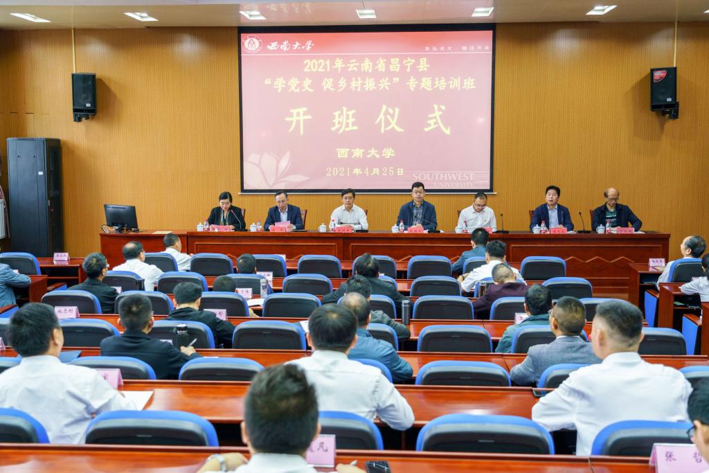 4月25日上午,2021年昌宁县“学党史 促乡村振兴”专题培训班在学校举行开班仪式。学校副校长赵国华出席开班式并致辞,昌宁县委副书记、县委统战部部长、县委党校校长张涛出席开班仪式,学校及昌宁县相关领导干部参加。开班仪式由学校培训与继续教育学院党总支书记谭琳主持。