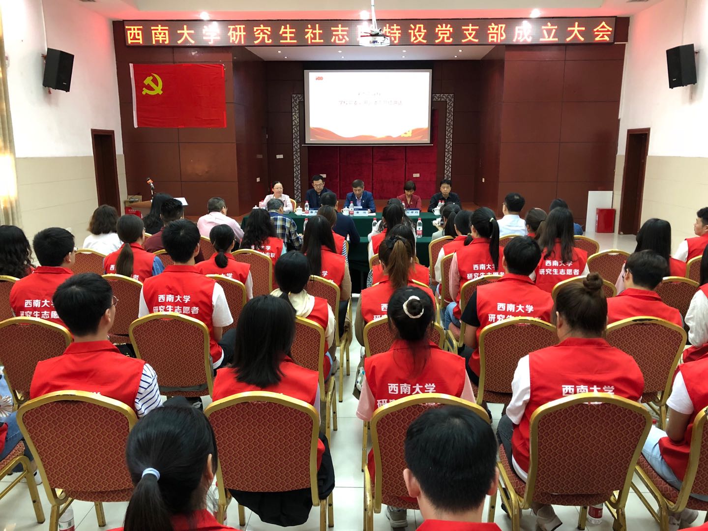 4月30日下午,学校研究生社会实践与志愿服务联合会特设党支部(以下简称研究生社志联特设党支部)成立大会在研究生院八一礼堂召开,学校党委副书记潘洵出席会议,党委组织部、研究生院 党委研究生工作部相关负责人,各二级培养单位党委副书记以及社志联特设党支部全体成员参加会议。