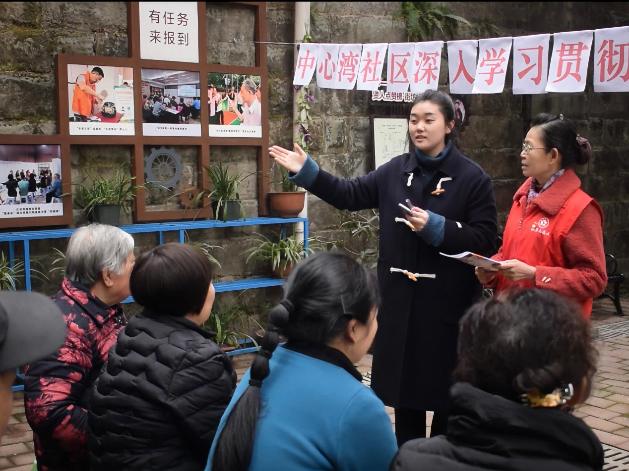 寒假期间,一批宣讲团成员还就近深入家乡社区或实习的企事业单位一线,传递党的二十大精神青年声音。廖鑫宇在重庆沙坪坝区中心湾社区开展院坝宣讲,从北京冬奥会的中国浪漫到《流浪地球》的全球热映,深入浅出地给居民们讲述了文化自信的丰富内涵、精神实质和重大意义。王艺瑾来到河南省焦作市马村区人民医院,通过丰富详实的数据、人物、事例,和医务工作者们分享了自己对“中国式现代化的中国特色”的理解认识。吕杰在湖北武汉江岸区良友红坊文化艺术社区和青年大学生、青年创业者们就党的二十大主题中蕴含的“自信自强、守正创新,踔厉奋发、勇毅前行”16字精神内涵进行宣讲交流,共同砥砺青年时代品格,共筑青年强国梦。郑广淼在所实习的中国移动重庆有限公司担任展厅讲解员,他将党的二十大精神宣讲融入特设党建星火版块讲解,不断在讲中学、在学中总结反思凝练提升。