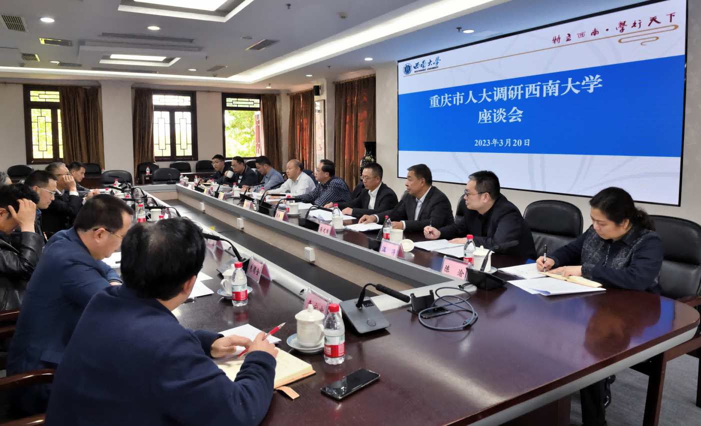 3月20日下午,重庆市人大常委会副主任沈金强一行来校调研指导“双一流”建设工作。学校党委书记李旭锋会见沈金强一行,党委副书记安春元、副校长葛信勇出席调研座谈会,相关职能部门负责人及教育学、生物学首席专家参加会议。会议由市人大常委会委员、市人大教科文卫委主任委员黄宗华主持。