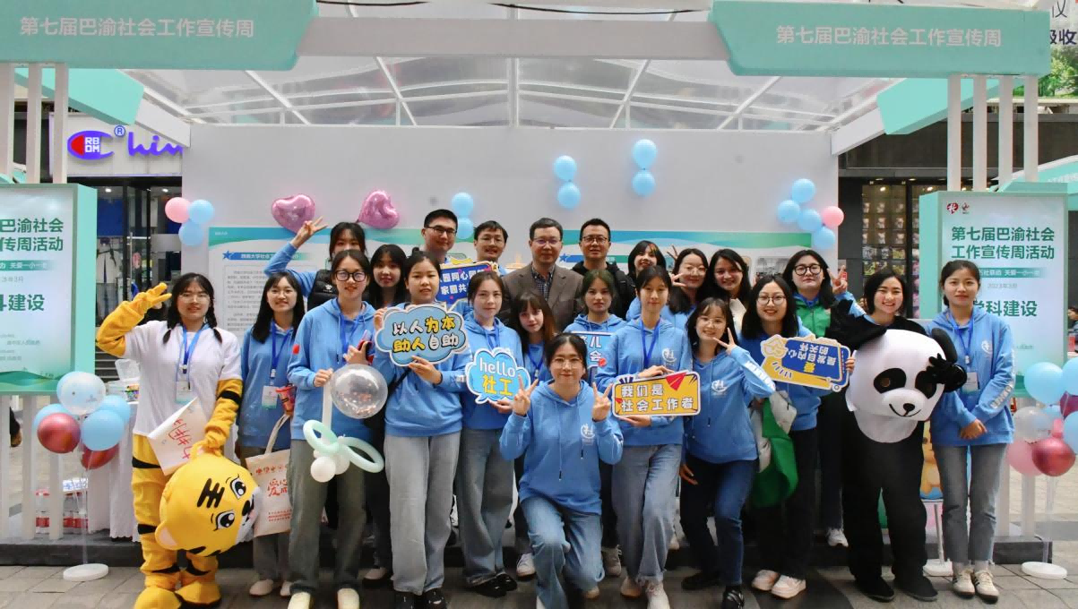 3月21日,在第17个国际社会工作日到来之际,由重庆市民政局主办,重庆市渝中区民政局承办的第七届巴渝社会工作宣传周开幕式在渝中区解放碑广场举行。学校作为唯一的高等本科院校受邀参加,国家治理学院社会工作30余名师生以丰富多样的形式全方位多角度展示了学校社会工作专业的办学成果,赢得了参展单位和群众的广泛好评。