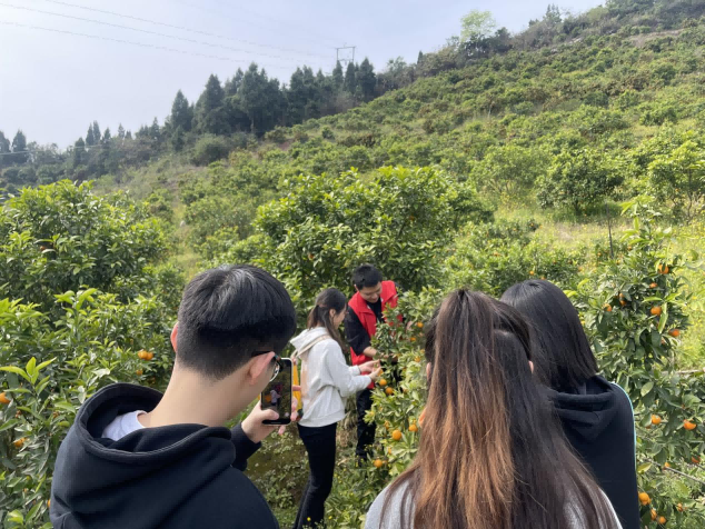 簇新的村落院坝外桃花正艳,整齐的宜机化耕地里油菜花正黄,成片的沃柑林间游人穿梭如织,野趣盎然的张飞古道令人心生向往……这是新闻传媒学院学生党员镜头里的三月西山坪春景,也是这次乡村党课的鲜活实践。