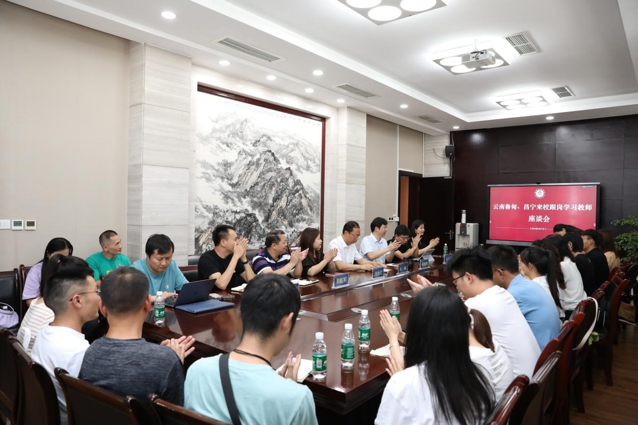 贝博艾弗森代言体育官网附属中学始终以高度的政治责任感积极推进教育部“县中”托管帮扶工作及教育部定点帮扶工作。近日,附属中学召开云南鲁甸一中、云南昌宁一中等帮扶学校来校跟岗学习教师座谈会。附属中学党委书记、校长欧健,总督学邓晓鹏以及部分领导班子成员出席会议。