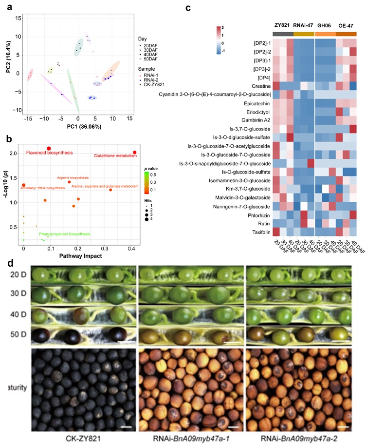 图2 BnA09MYB47a影响黄酮类化合物的积累