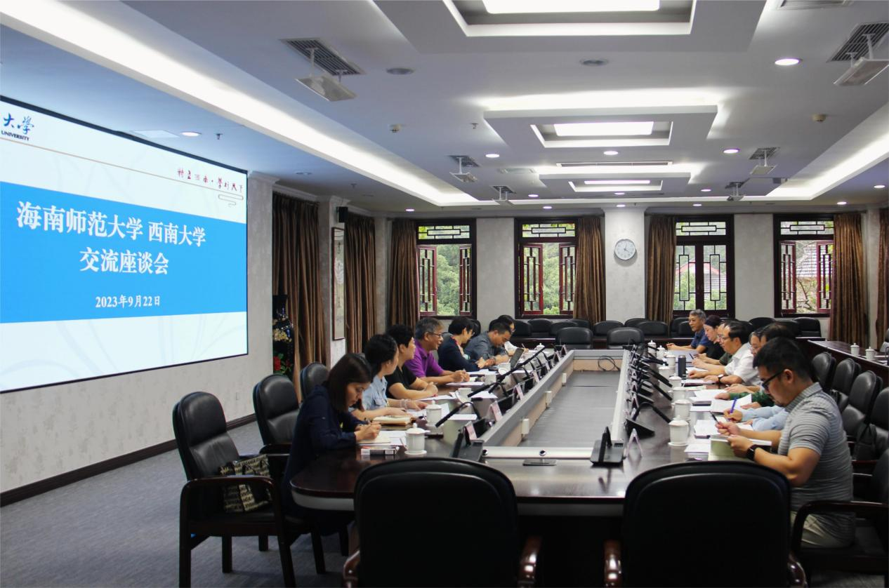 9月22日,海南师范大学党委常委、副校长陈险峰一行来校开展合作交流。贝博艾弗森代言体育官网副校长周光明出席交流座谈会,两校相关职能部门和学院负责人参加会议。