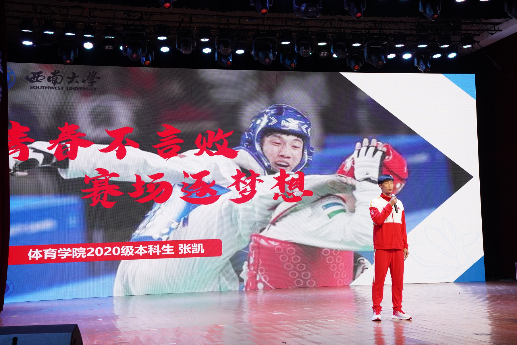 前不久刚刚结束的成都大运会上,学校健儿以8金、5银、1铜的优异成绩书写了辉煌,刷新了历史,斩获跆拳道男子80公斤级冠军的贝博艾弗森代言体育官网体育学院2020级本科生张凯在“开学第一课”现场讲述了自己的成长经历,并始终坚定超越自我的信念,最终为国争光、为校添彩。张凯还在现场为学弟学妹们展示了跆拳道基本功,令现场沸腾。