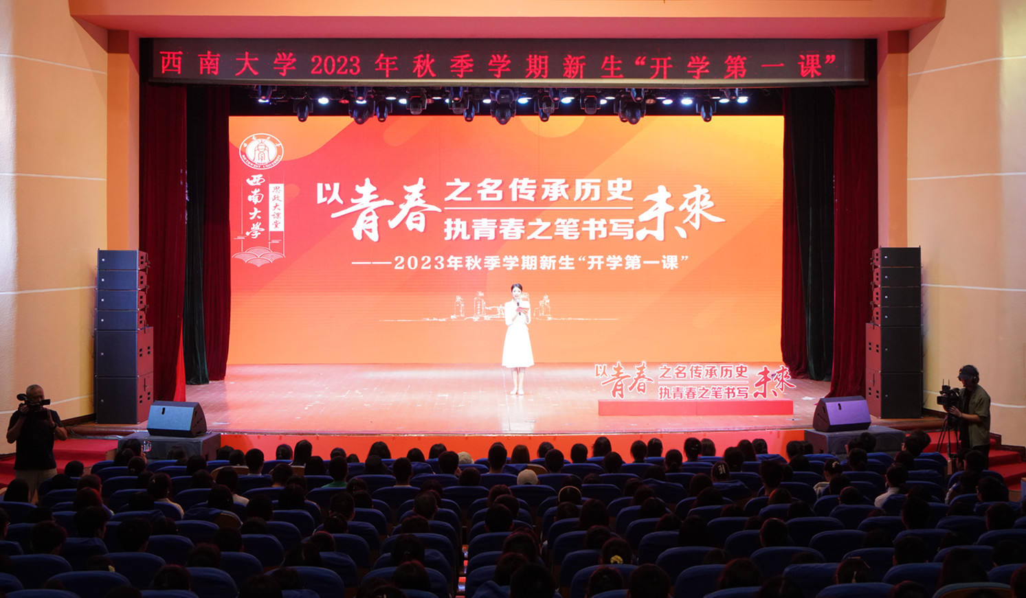 在刚刚结束了14天军训的青年学子们正式开启大学学业生涯前,学校专门安排集中入学教育,为新生大学生活导航定向。9月26日,学校举行“以青春之名传承历史 执青春之笔书写未来”主题“开学第一课”,从致历史、致青春、致未来三个维度,引导初入大学的青年学子们感悟校史底蕴,厚植家国情怀,砥砺强国志向。