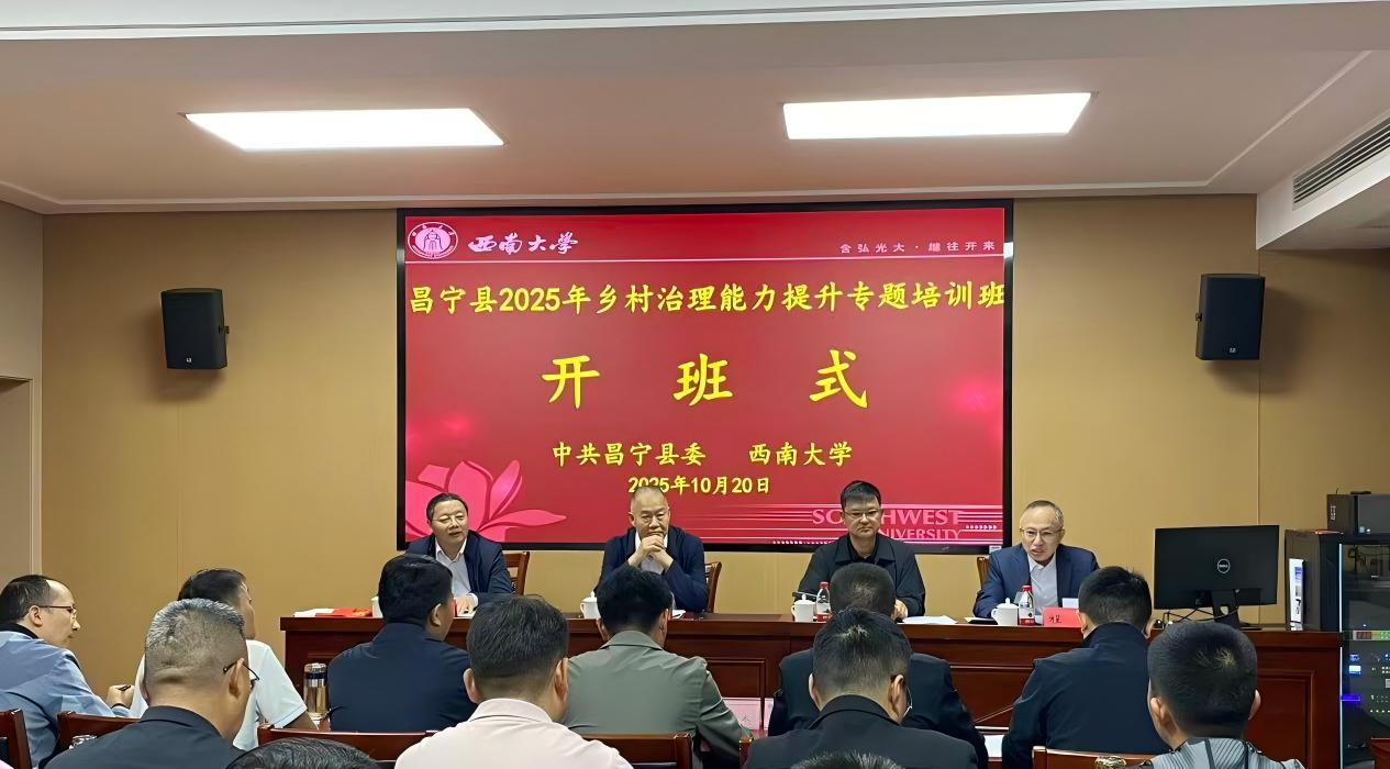 10月20日上午,昌宁县2025年乡村治理能力提升专题培训班开班式在继续教育学院举行。副校长葛信勇,昌宁县人民政府党组副书记、副县长刘志刚,学校社会服务处处长杨明厚出席开班式。仪式由继续教育学院院长程龙主持。