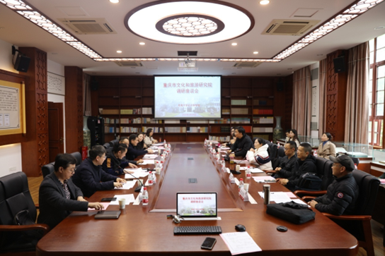 为做好有组织科研,进一步提升2023年国家社科基金艺术学项目申报质量,3月29日上午,学校在文学院院史陈列室组织召开重庆市文化和旅游研究院调研座谈会。会议特邀市文化和旅游研究院院长牟元义、科研组织部主任王美木、艺术规划办王静老师参加,社会科学处处长王牧华,副处长王作军、刘新智,文学院、音乐学院、美术学院、新闻传播学院分管科研副院长及教师代表等20余人参会,会议由王牧华主持。