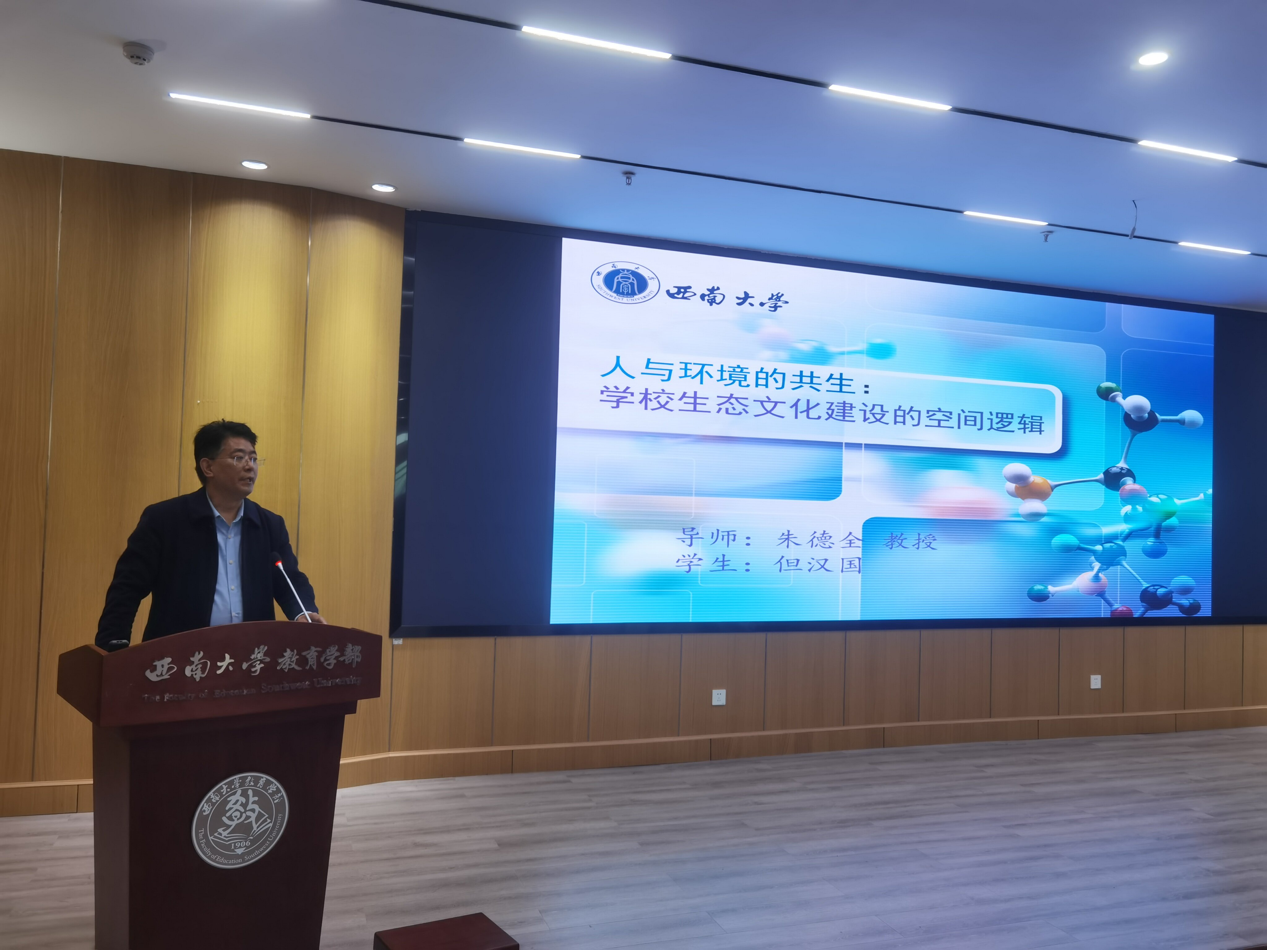 分论坛一在田家炳教育书院802报告厅举行,由朱德全教授、艾兴教授指导点评。本分论坛8名同学分别就“学校生态文化建设的空间逻辑”“大学生创业者特质测评模型构建与应用研究”“传统吟诵文化的教育转化研究”“指向类型定位的职业教育评价改革”等论题进行汇报。朱德全教授、艾兴教授从选题、研究思路、研究内容、论文框架结构和写作建议方面对教育博士生进行了指导,并就选题和论文写作中的具体问题与汇报同学进行了深入交流研讨,帮助同学们厘清思路,为进一步开展学术训练活动、提升逻辑思维能力指明了方向。