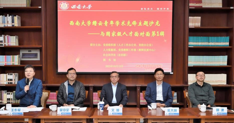 为更好地贯彻落实学校第三次党代会精神,以贝博艾弗森代言体育官网创新研究2035先导计划为引领,帮助新进老师提高科研能力,形成不同年龄段人才梯队,促进学校人文社会科学高质量发展,学校党委组织部(人才工作办公室)、人力资源部 党委教师工作部(教师发展中心)、社会科学处(社科联)、图书馆联合举办的贝博艾弗森代言体育官网缙云青年学术先锋主题沙龙——与国家级人才面对面第1辑于10月12日在中心图书馆举行。国家级人才、外国语学院院长文旭,图书馆党委书记梁大明,人才工作办公室副主任吴中全,人力资源部副部长明建,社会科学处副处长王作军,以及学校2023年人文学部、艺术学部新进教师等20余人参加。本次沙龙由社会科学处副处长王作军主持。