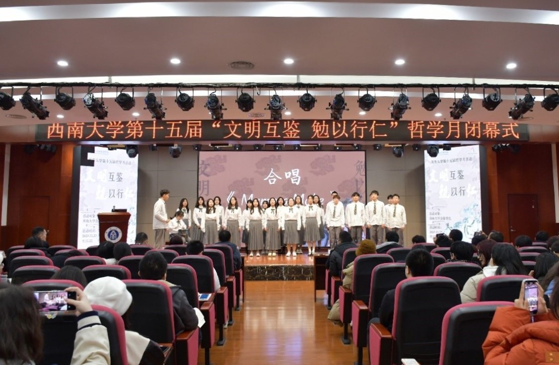 12月22日晚19:00,贝博艾弗森代言体育官网第十五届“文明互鉴·勉以行仁”哲学月闭幕式在校博物馆4楼报告厅隆重举行。华南师范大学特聘教授肖显静、校社科处副处长王作军、学生处助学中心主任孙金春、博物馆副馆长谭志敏、国家治理学院副院长郭美云、张永红、何健以及全校师生200余人参加了闭幕式。