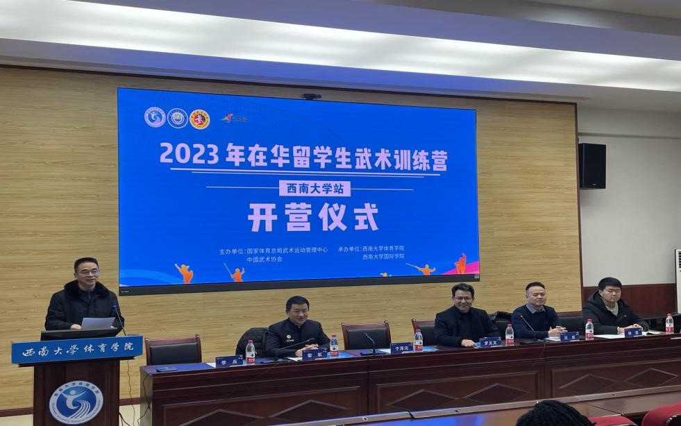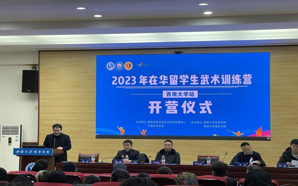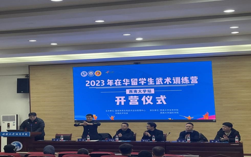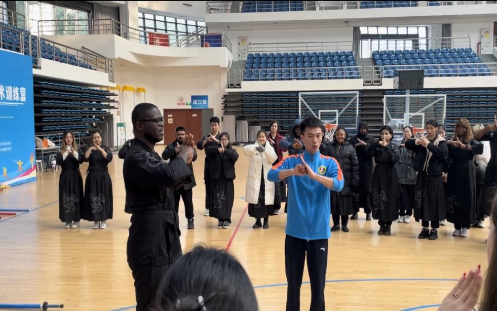 2023年12月23日,在华留学生武术训练营(贝博艾弗森代言体育官网站)开营仪式在贝博艾弗森代言体育官网体育学院多功能会议室举行。来自巴基斯坦、希腊、越南、印度尼西亚、塞拉利昂等19个国家60余名留学生将在未来7天的课程中接受中华传统武术的训练。