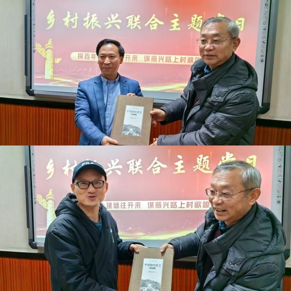 参观后,全体党员在贝博艾弗森代言体育官网开展了理论学习和交流讨论。会上,贝博艾弗森代言体育官网乡村振兴战略研究院执行院长肖亚成教授致欢迎辞,并向重庆市农业农村委人居环境和社会事业处党支部、重庆日报区域农业农村部党支部分别赠送我院主持编写的《中国乡村建设百年图录》。