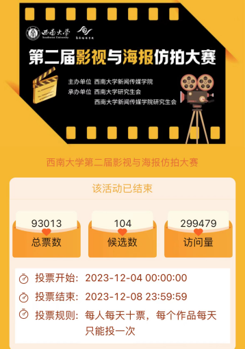 本次比赛吸引了全校34个学院的680余名选手参赛,累计征集作品242份。大赛评委组由相关学院专业老师、贝博艾弗森代言体育官网研究生会成员代表、二级单位研究生会成员代表组成,从影视主题、仿拍难度、还原度、画面精细度、作品创意五个维度对参赛作品进行评定。经过激烈角逐,大赛最终评出一等奖2名、二等奖4名,三等奖6名,网络最佳人气奖10名。