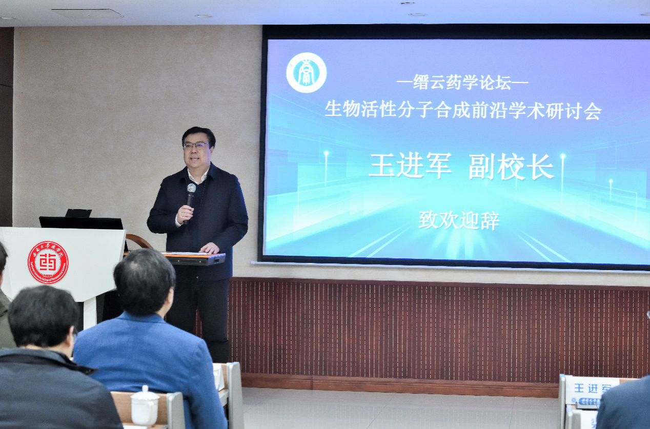 2024年1月26至28日,药学院举办“缙云药学论坛—生物活性分子合成前沿学术研讨会”。学校党委常委、副校长王进军出席会议并致欢迎辞。本次研讨会由四川大学副校长游劲松教授、上海科技大学梁广鑫研究员、北京大学杨震教授、上海交通大学张万斌教授、复旦大学施章杰教授、南开大学谢建华教授、中国科学院上海有机化学研究所李昂研究员、兰州大学樊春安教授、北京大学贾彦兴教授、华东师范大学高栓虎教授、清华大学刘强教授等11位专家受邀参加,共同分享了生物活性分子合成领域的最新学术成果和前沿技术。学校科技处处长胡昌华、教务处处长付志锋、药学院党委书记陈敏等出席本次学术研讨会。市内高校相关领域师生150余人参加会议。