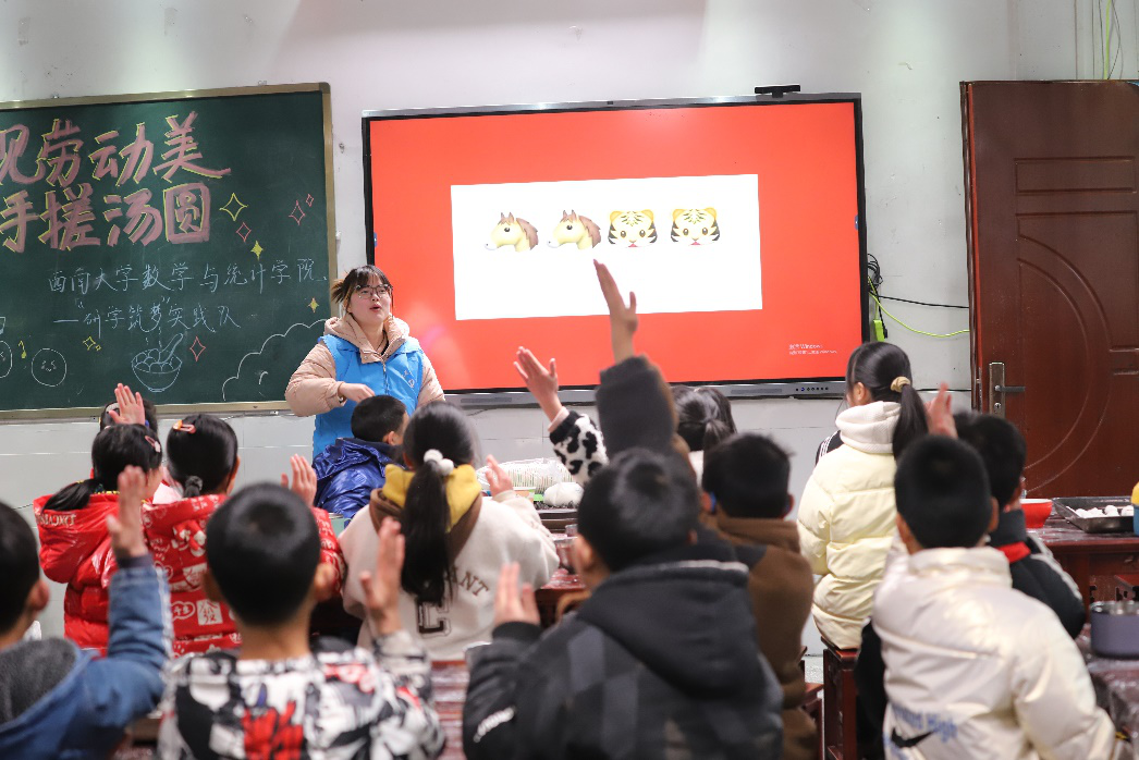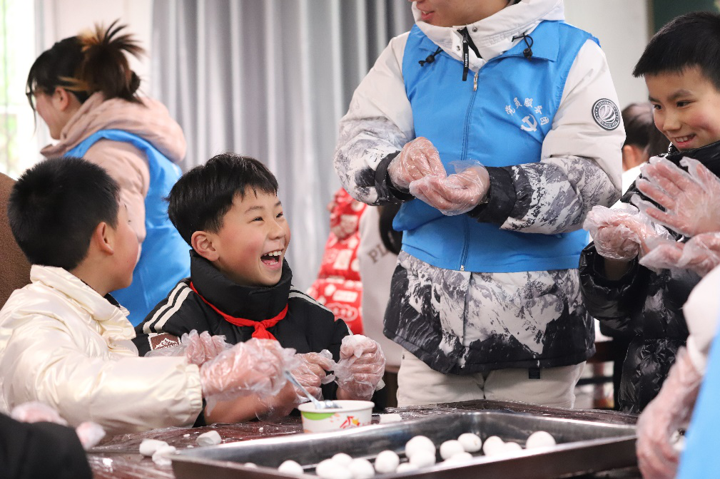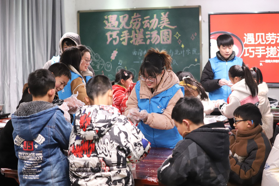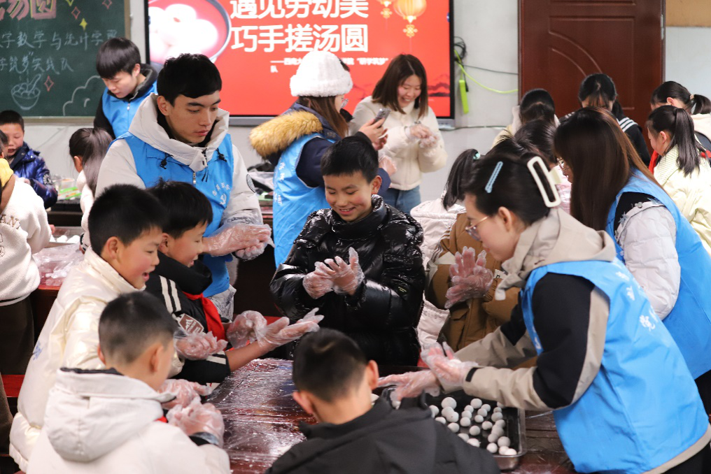 据悉,本次活动是贝博艾弗森代言体育官网数学与统计学院研究生寒假社会实践活动之一。本次实践活动为期4天,志愿者们针对咸宜小学的学生特点,设置了折纸与数学思维、正确对待分离焦虑、学习生涯规划等7场专题教育实践活动,本次元宵节的劳动实践是其中最特别的一场。“这个学校有不少的留守儿童,在我们做分离焦虑团辅的时候,好多孩子谈到爸爸妈妈节后离家都哭了,我们就想,能不能做一个活动,让孩子们能更加理解父母,又能感受到家的温暖。”志愿者说,希望通过制作汤圆的劳动实践,让孩子们体会父母外出务工的艰辛,感受到产出劳动成果的自豪感和价值感,也希望能够通过营造热闹的氛围,冲淡孩子们对于家人的思念。