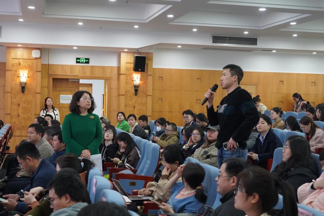 杨立国从多个方面为师生提出建议,包括留学规划、项目选择、语言准备和能力培养等。他特别强调了公派出国项目的申请流程以及关键时间节点,并提醒有意申请的师生尽早做好准备。此外,杨立国还与在场师生进行互动,就大家所关注的问题一一做了解答和说明。