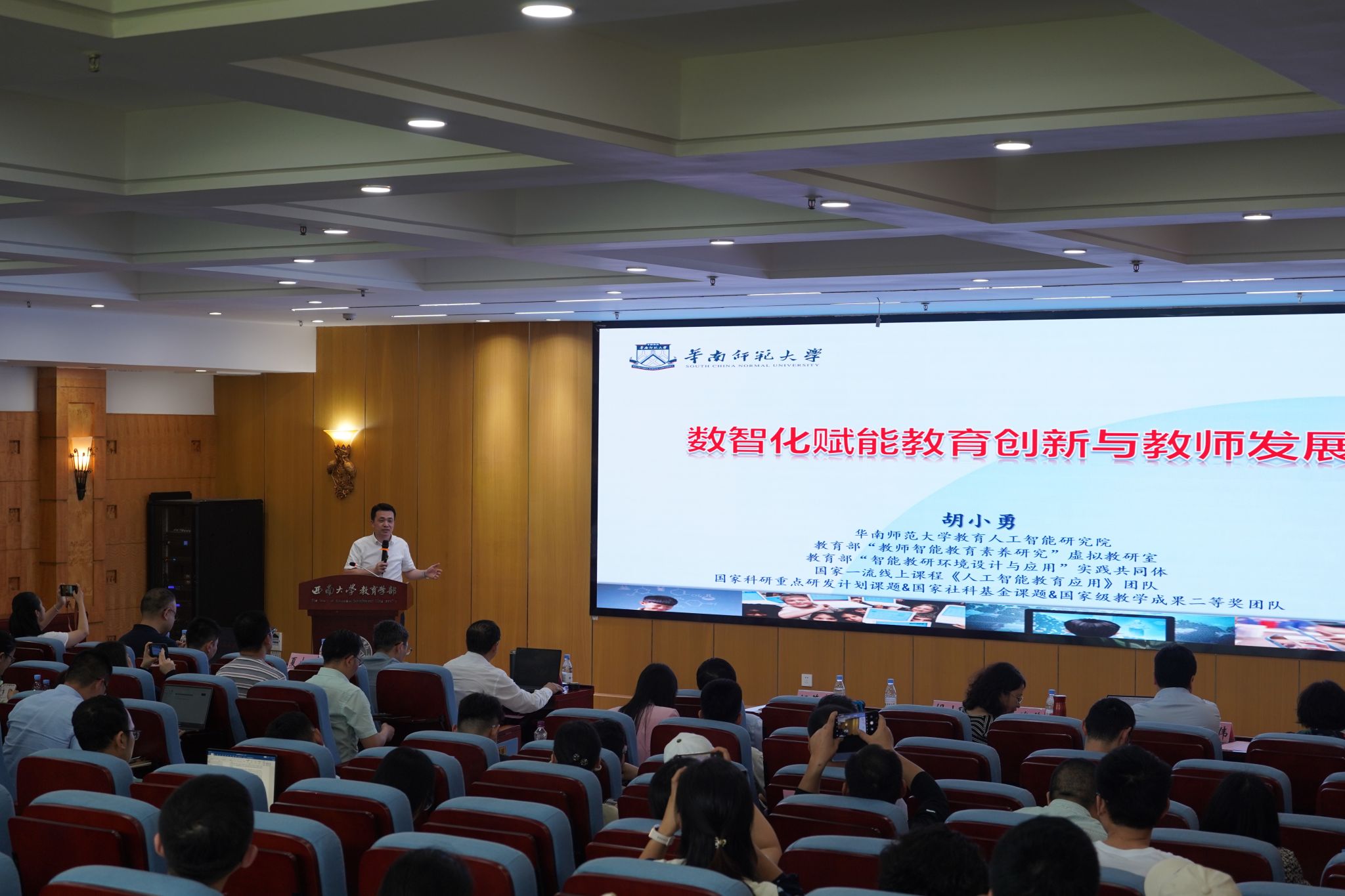 随后,教育部高校教育技术专业教指分委秘书长胡小勇教授作了题为“数智化赋能教育创新与教师发展”的报告。他围绕数智时代教师如何看待变化、数字转型既是时代需求又是领域空白、如何培养智能时代的优秀教师和数智化如何赋能课程建设四个方面展开了讲解。他指出数智时代教师的主体地位不可忽视,教师要主动适应信息化、人工智能等新技术变革,利用好数字技术这个工具,教师才是教育数字化战略的中坚力量。