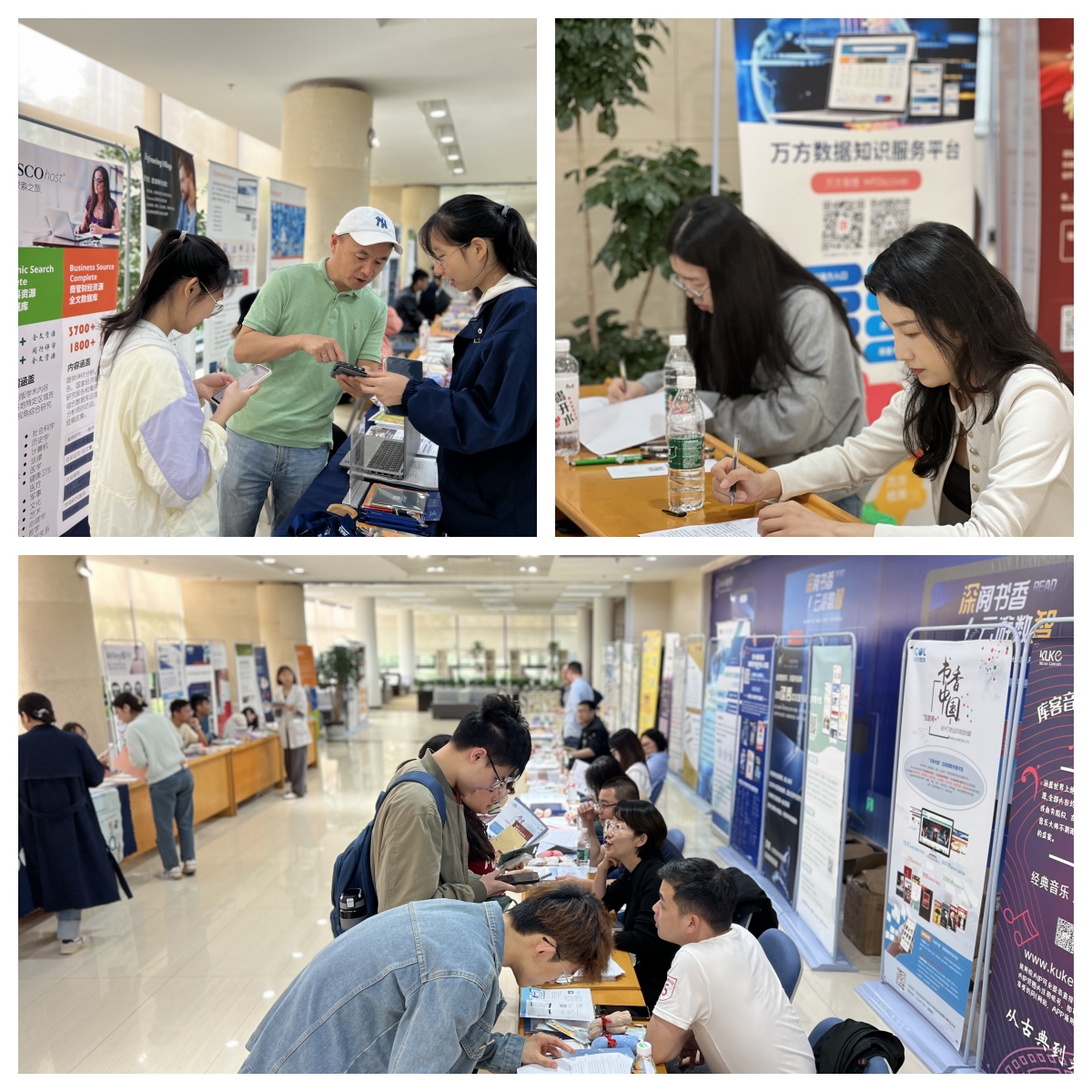 活动吸引了多家中外文数字资源商的参与,他们通过宣传海报、宣传手册及到场宣讲等方式展示了图书馆购买的数字资源,为师生提供了一个近距离了解和体验数字资源的机会。活动现场互动频繁,师生们对数字资源表现出了浓厚的兴趣,他们积极与资源商代表交流,咨询使用过程中碰到的疑问。