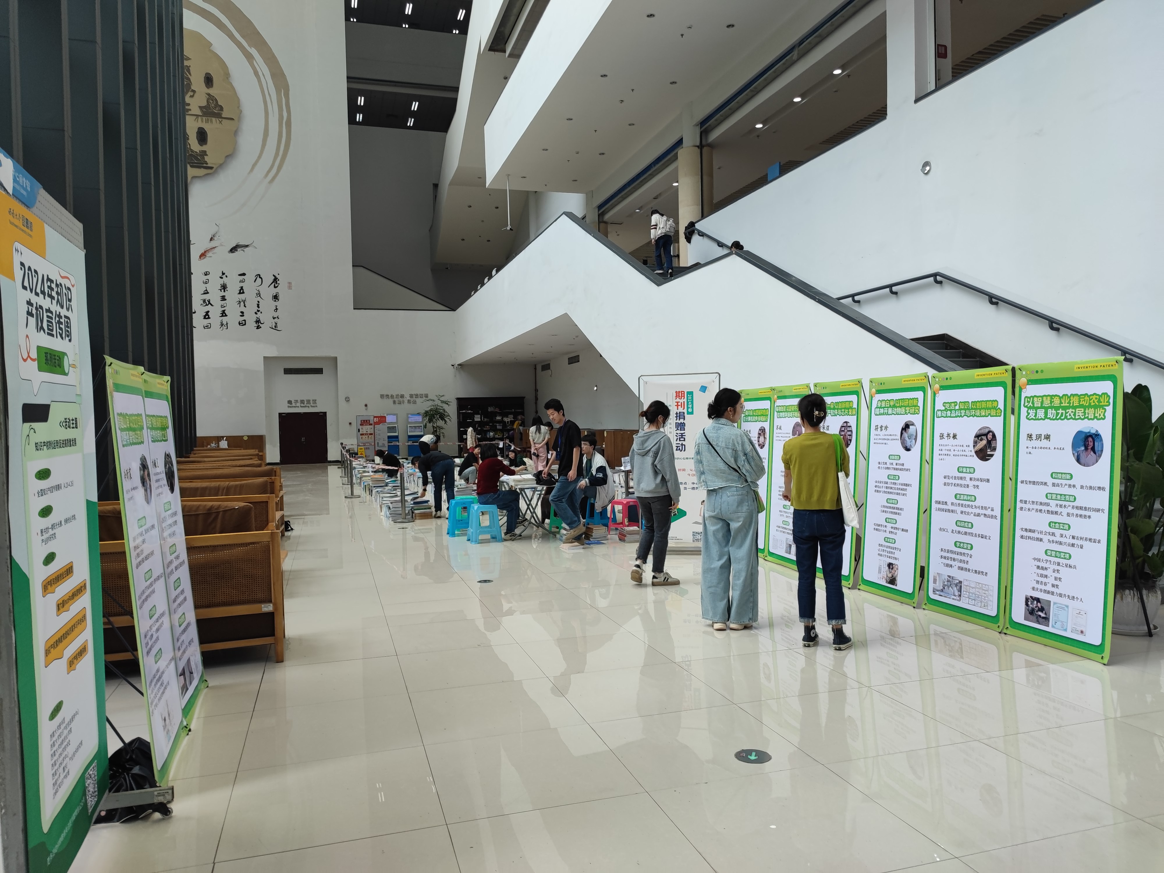 4月20日至30日,图书馆、创新创业学院、资产经营有限公司、科学技术处(科协)等在中心图书馆联合举办“知识产权与创新创业”主题展览,宣传学校科研团队成果转化的典型案例和学生创新创业的优秀案例。展出海报反映了学校科研团队成果转化显著成效,以及学生在创新项目、发明专利、科研竞赛、社会实践等方面的成就与荣誉,充分体现贝博艾弗森代言体育官网师生在知识产权创新和利用方面的能力。学生纷纷驻足观看并在主题展架前进行拍照打卡。