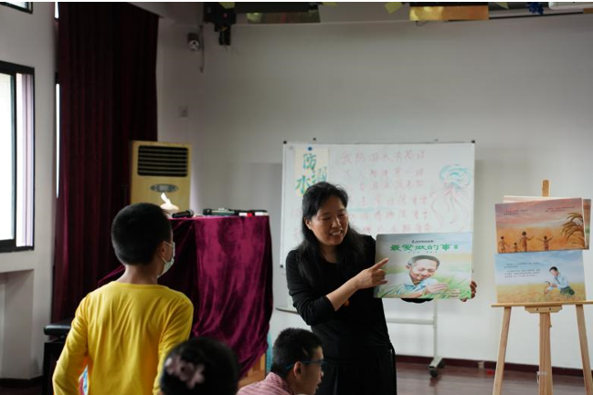 18日上午,细雨绵绵,北碚区特殊教育学校副校长陈群、德育处主任贺仲灵与特殊儿童及其家长在志愿者引导下乘坐校园观光车一路观赏西大校园。看到校园中郁郁葱葱的绿树、五彩斑斓的鲜花,家长和孩子们都感叹西大校园就像美丽的大花园。来到田家炳教育书院的实验室,贺主任用图文结合的绘本,满含深情地为孩子们讲述了贝博艾弗森代言体育官网杰出校友、我国“杂交水稻之父”袁隆平院士的生平故事,让孩子们了解袁隆平爷爷克服困难,科学育种,最终解决世界粮食问题的科学故事。听完故事后,孩子们拿着画笔绘出自己心目中的袁爷爷。