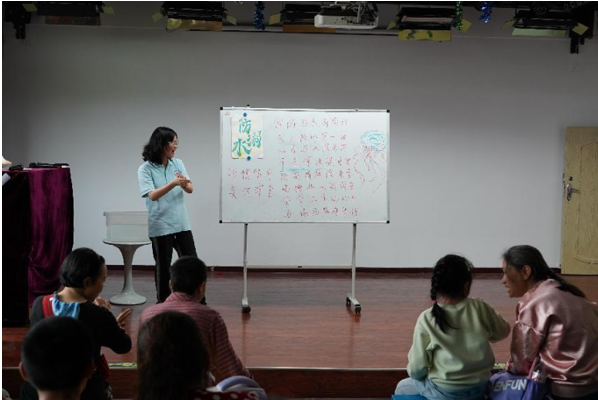 志愿者梁梦给孩子们带来了一场别开生面的防溺水安全教育。志愿者塔娜为孩子们讲述了绘本《大脚丫跳芭蕾》的励志故事,主人公贝琳达追求梦想的故事打动了每一个孩子和家长,最后孩子们用马克笔和黏土认真地创作了芭蕾舞者的美丽形象。