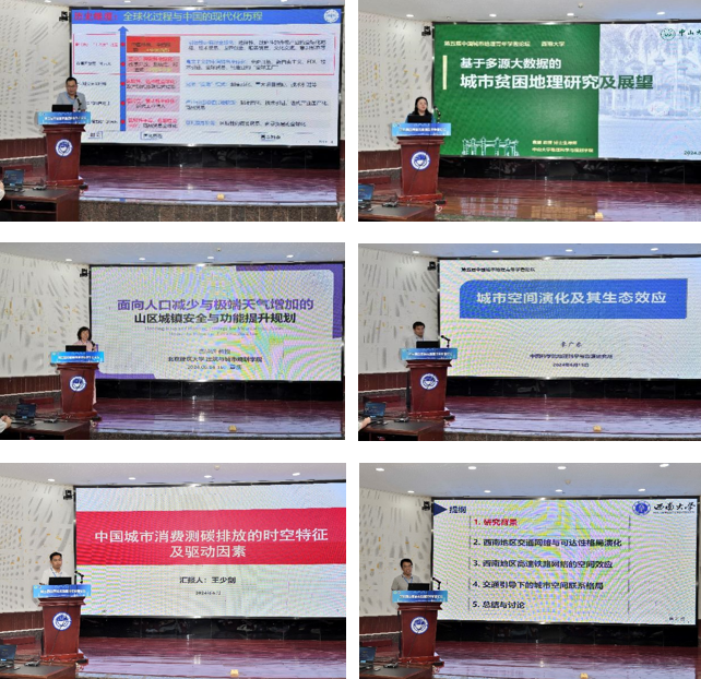 兰州大学杨永春教授、中山大学袁媛教授、北京建筑大学高晓路教授、中国科学院地理科学与资源研究所李广东研究员、武汉大学王少剑教授、贝博艾弗森代言体育官网宗会明教授分别做了“改革开放以来中国西部城市的全球嵌入模式”“基于大数据的城市贫困地理研究及展望”“面向人口减少与极端天气增加的山区城镇安全与功能提升规划”“城市空间演化及其生态效应”“中国城市消费侧碳排放的时空格局及驱动因素”“西南地区交通网络格局及其城镇空间效应”大会主旨报告。地理科学学院党委书记姚元锦介绍学院发展历程。