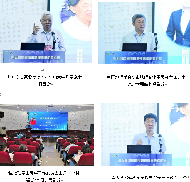 开幕式由地理科学学院副院长唐强教授主持,贝博艾弗森代言体育官网科技处处长胡昌华,原广东省高教厅厅长、中国地理学会城市地理专业委员会创始人、中山大学许学强教授,中国地理学会城市地理专业委员会主任、南京大学甄峰教授,中国地理学会青年工作委员会主任、中国科学院地理科学与资源研究所戴尔阜研究员先后致辞。