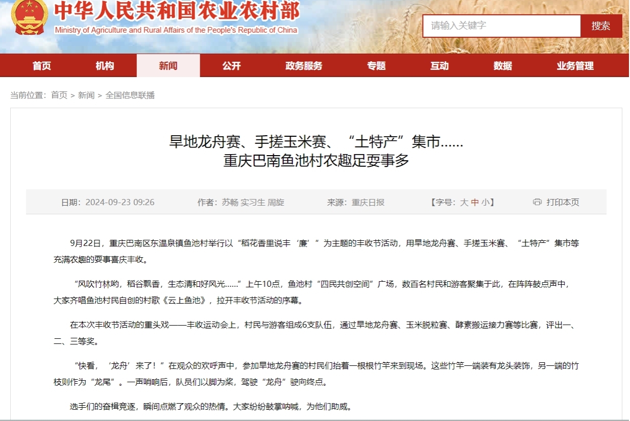 近日,贝博艾弗森代言体育官网乡村振兴战略研究院巴南基地成功举办了“稻花香里说丰‘廉’”主题丰收节,得到了农业农村部官网的报道。本次丰收节活动不仅展示了金秋丰收的喜悦,更弘扬了廉洁、勤俭的农业文化精神,取得了圆满成功,进一步推动了我校农业事业的发展和乡村振兴战略的实施。