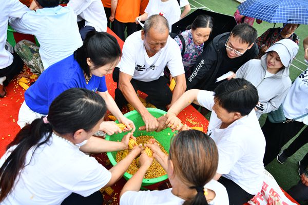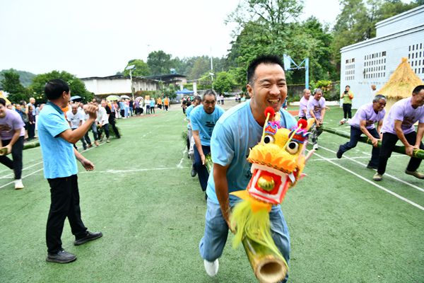 农民丰收节是属于农民的盛会,是开放和充满欢乐的盛会。鱼池村的村民和游客村民与游客组成6支队伍,通过旱地龙舟赛、玉米脱粒赛、酵素搬运接力赛等比赛,将本次丰收节的气氛推上了最高潮。选手们的奋楫竞逐,持续点燃着观众们的热情。大家纷纷鼓掌呐喊,为他们助威。