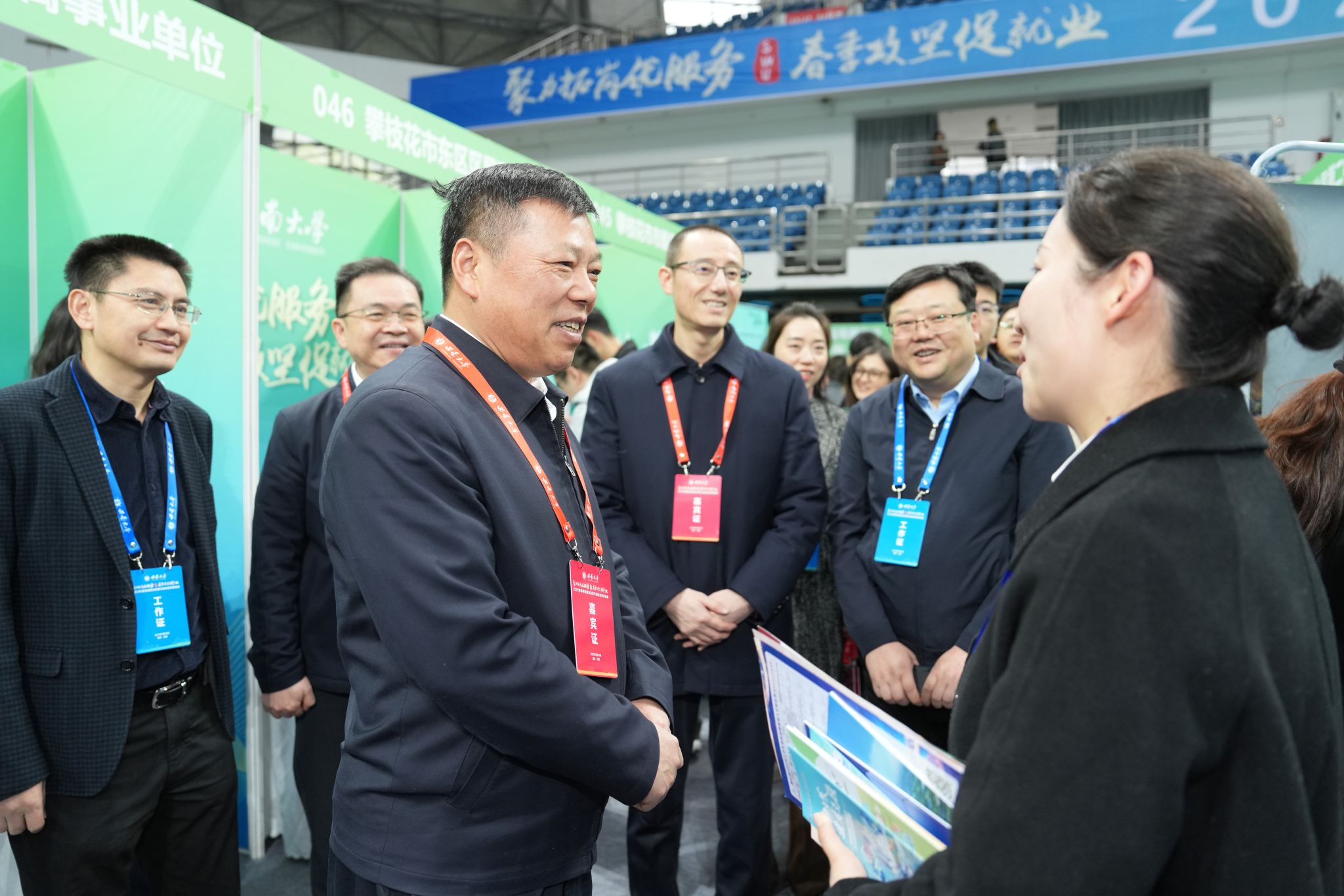 双选会期间,党委书记张卫国、校长王进军来到现场,深入了解用人单位的发展和人才需求情况,听取用人单位对学校人才培养的建议,与学生亲切互动,引导学生抢抓就业机遇,精准定位职业方向,科学制定职业规划,找到与自身兴趣、特长及职业目标相匹配的发展道路。
