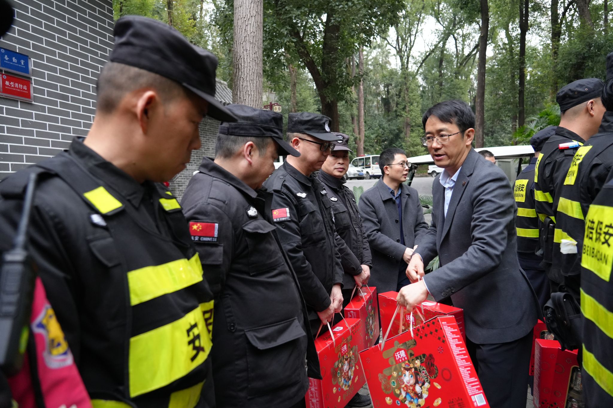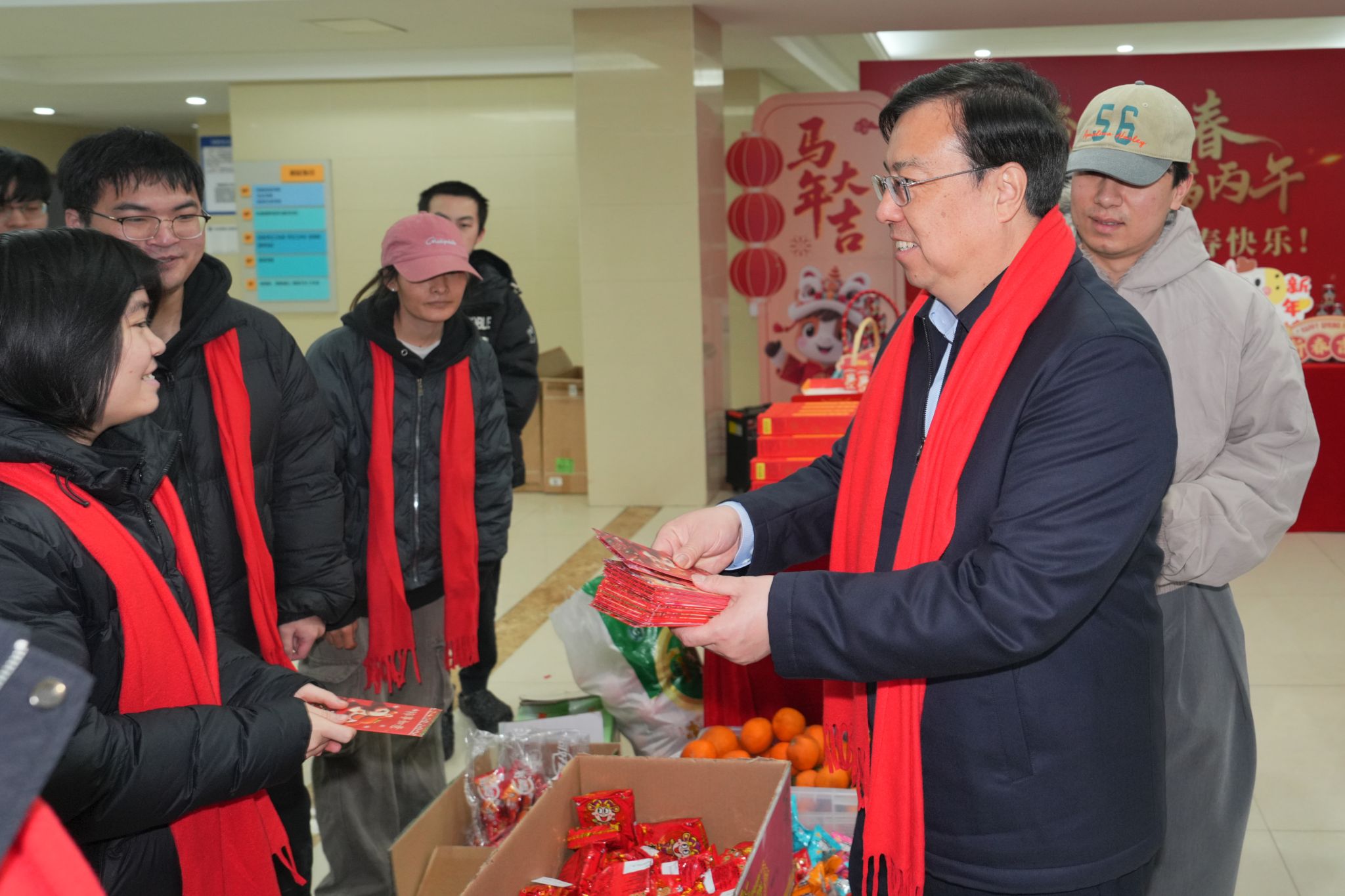 2月16日除夕上午,校长王进军、副校长邱江带队走访慰问春节期间坚守一线的教职员工和留校学生,向他们致以节日问候,并送上慰问品。